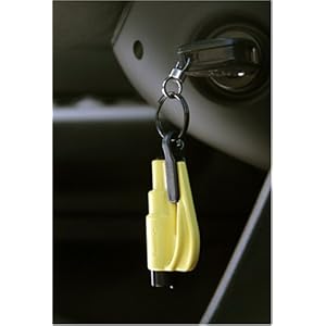 At just a hair over 3-inches in length and .6 ounces, ResQMe easily fits on to your keychain with a detachable clip. This small size also allows it to be stored in any number of places convenient to the driver, including a hanging position directly on the the steering or shifting columns, or in the extra key compartment under the dash. In the event of an entrapment pull the clip away from the product to reveal the cutter (blade). Hook this over a jammed seat belt and pull to free yourself. To activate the window breaker, simply push the black head against a side window until the concealed spring-loaded spike releases and shatters the window. Shattering a side window with ResQMe takes as little as 12 lb Of pressure, meaning that virtually anyone can use it. And the fact that the blade can stand up to several uses and that the spike is easily loaded back into the ready position means that you will always be ready if you are unfortunate enough to be faced with another emergency incident.